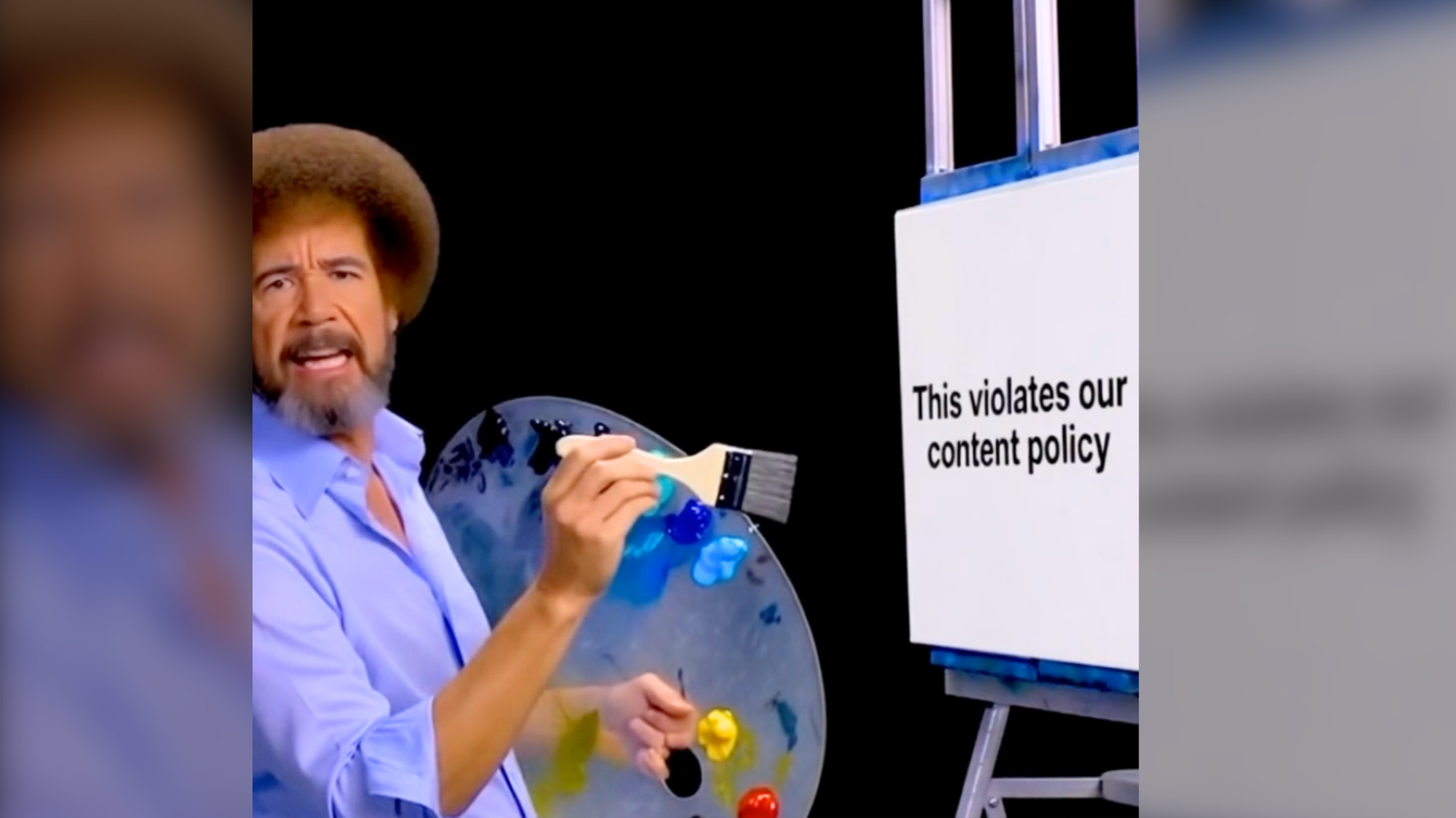 A ton of the videos on Sora right now are of Martin Luther King, Jr. either giving brainrot versions of his iconic “I have a dream” speech and protesting OpenAI’s Sora guardrails. “I have a dream that Sora AI should stop being so strict,” AI MLK says in one video. Another popular prompt is for Bob Ross, who, in most of the videos featuring the deceased artist, is shown protesting getting a copyright violation on his own canvas. If you scroll Sora for even a few seconds today, you will see videos that are primarily about the content moderation on the platform. Immediately after the app launched, many popular videos featured famous characters; now some of the most popular videos are about how people are pissed that they can no longer make videos with those characters.