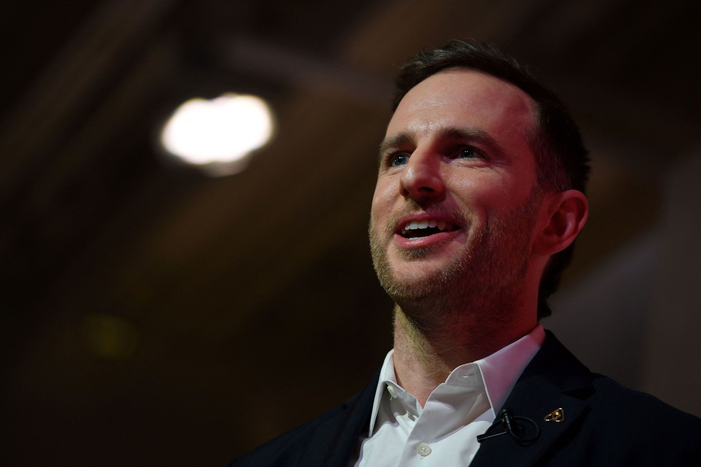 Gebbia was reportedly spotted at a San Francisco coffee shop using an unidentified pair of earbuds with a circular disc that looks similar to the device seen in a recent OpenAI hoax ad.
